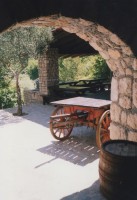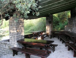 Very demanding, difficult, and time-consuming task required a clearing bank for the dock for delivery of construction materials with water - the only possible approach. The dock today serves for boats and ships for transportation of tourists. Then is built beautiful beach around.The narrow stone stairs leading from the beach to the terraces at several levels. Stone walls and paths linking all. Dedicated wrought iron torches at night light and form the landscape magnificent.