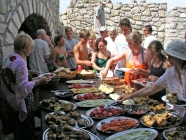 With numerous additions domestic fritters, honey, goat cheese, local olives and homemade red and white wine, and - domestic branch.